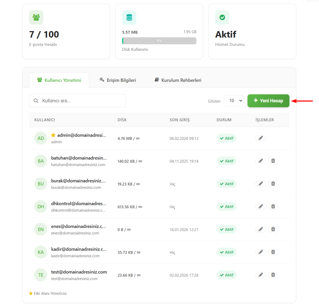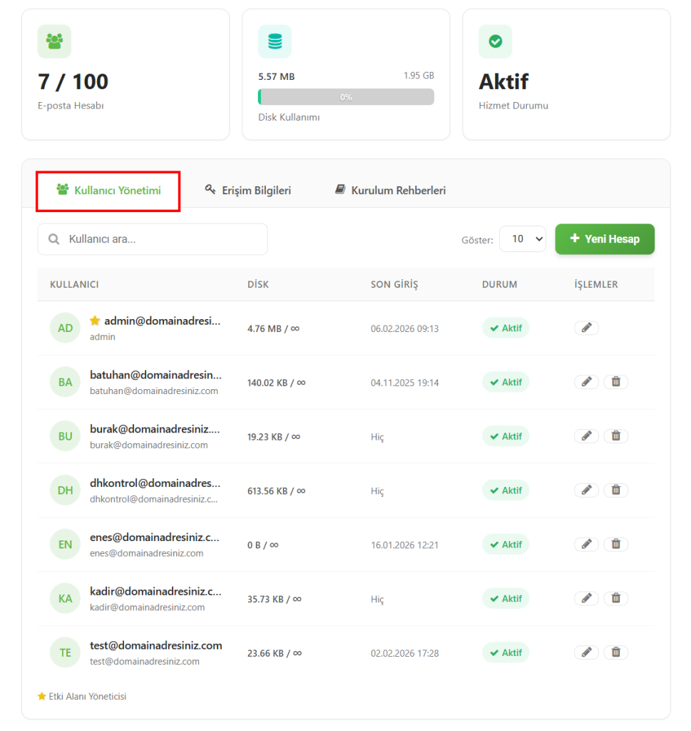 Opsiyon 2: Kurumsal E-mail Yönetim Sayfası Üzerinden