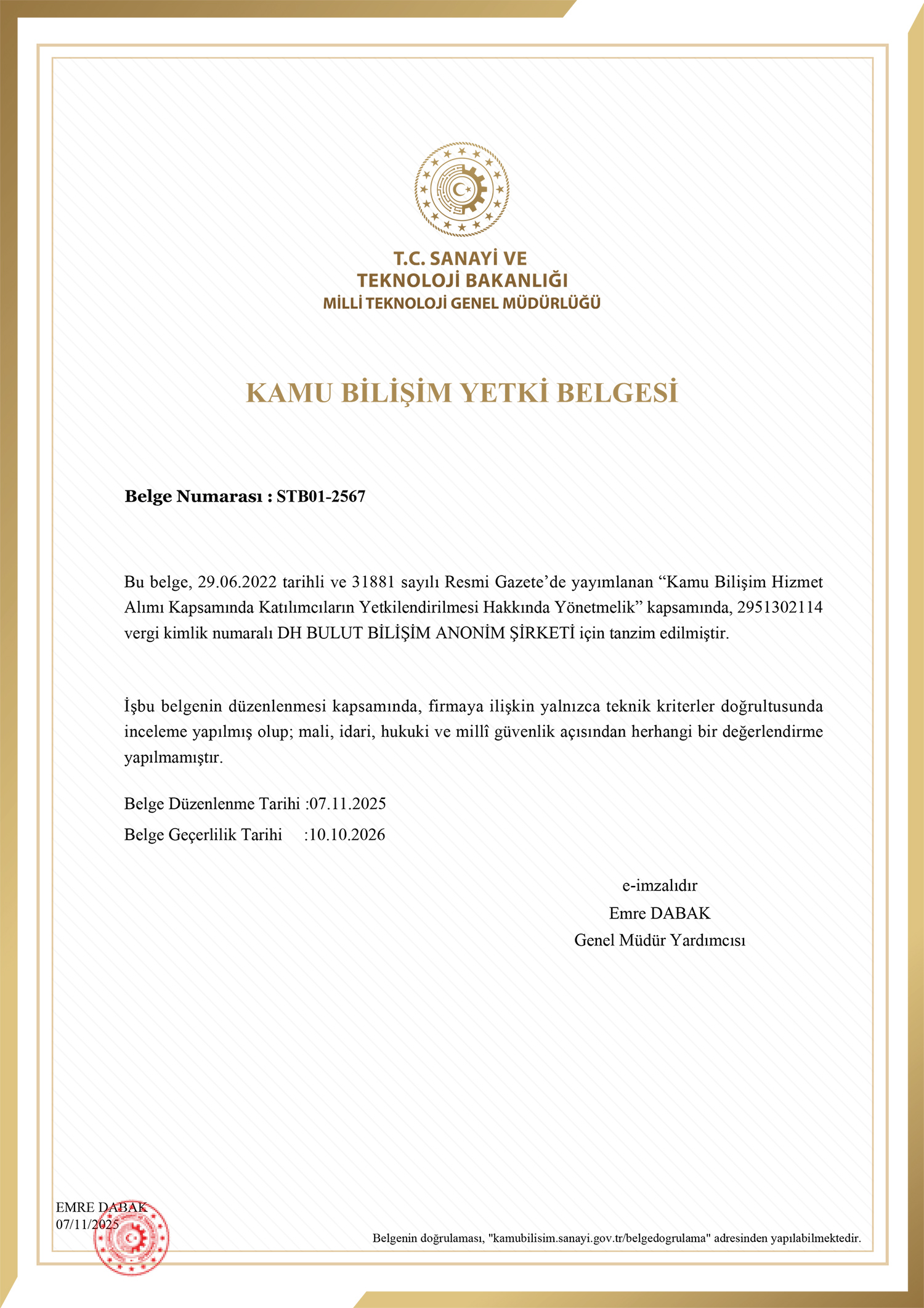 Ünvan: DH Bulut Bilişim Anonim Şirketi