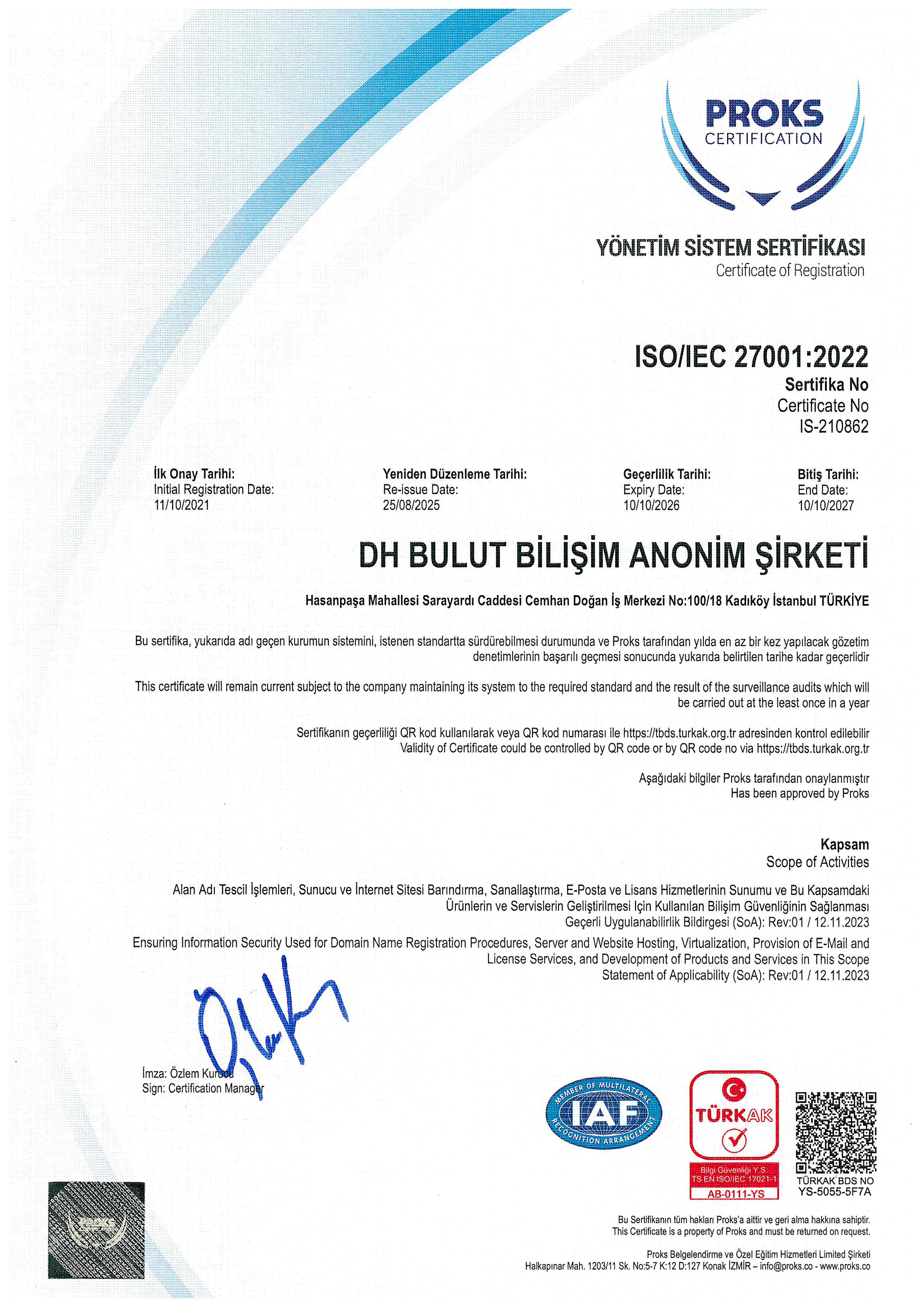2021 son çeyreği itibariyle ISO/IEC 27001:2022 Bilgi Güvenliği sertifika uyumluluğunu tamamlayarak, güvenliğe verdiğimiz önemi tescilledik.